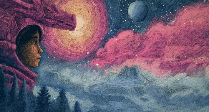 We split into teams and were challenged to build a narrative world from scratch using only generative AI tools. Our team created The Last Museum — a speculative story about the final surviving fragment of Earth, drifting through deep space as a floating museum.